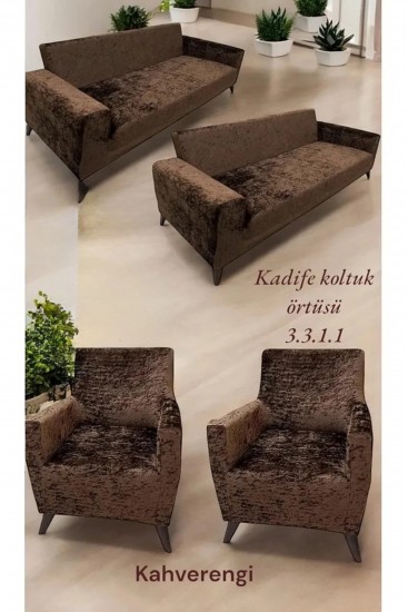 Kahverengi Kadife Koltuk Örtüsü 3 + 3 + 1 + 1