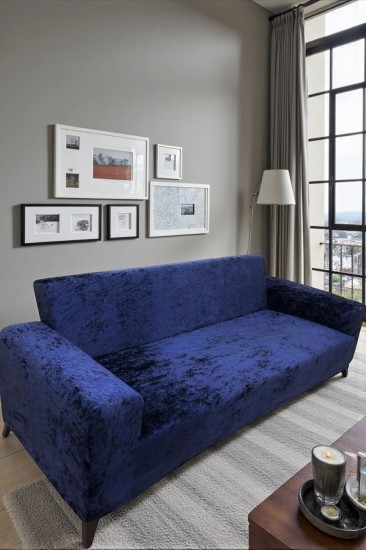 Lacivert Kadife Lastikli Koltuk Örtüsü